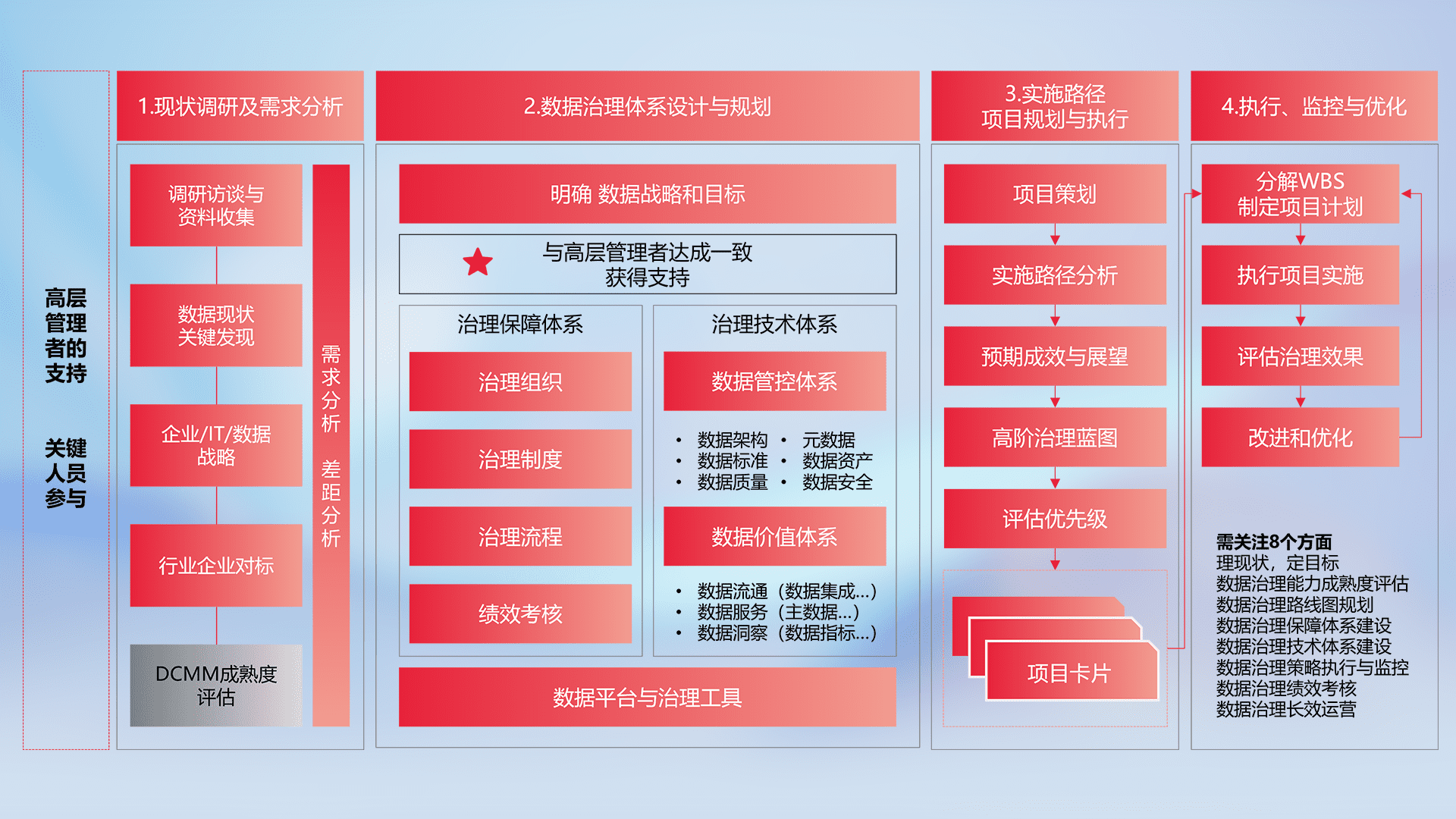 制定并执行统一的数据标准,,,,规范数据定义和格式,,消除冗余和不一致性,,实现跨部门和跨系统的数据一致性,,,,为企业提供标准化的数据基础。。